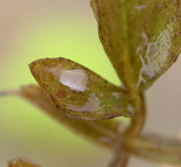 ヤマトゴマフガムシ卵嚢. 田植え直後の水田でみつけた.卵嚢の中には2個の卵が入っている. |