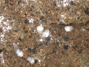 ツヤヒラタガムシ卵嚢. 多産地では6月頃,川辺の石裏で容易にみつけることができる. |