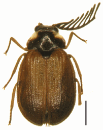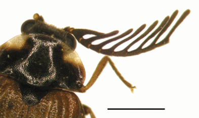 et. al., 1999).雄の触角は櫛ヒゲ状で(第1,2節は短く分岐しない),各節の先端付近で分岐する.雌の触角は鋸歯状.体型でも雌雄差は明瞭で,雌は雄に比べて大型で体幅が広い.