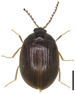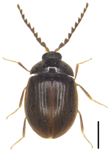 成虫の体長は2.4-3.4 mm(Lee et al., 1997).チビマルヒゲナガハナノミにきわめてよく似ており,識別には雄交尾器の検討が必要である.