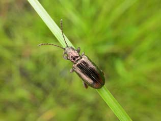 2003年6月14-15日に兵庫県波賀町で開催された日本甲虫学会の採集会に個人的に参加しました。甲虫学会は大阪市立自然史博物館に事務局があり、主に関西のプロやアマチュアの甲虫研究者・愛好者からなる学会です。学会誌(英文・和文誌)の発行のほか、年に数回の例会と採集会があります。今回は、甲虫の採集地として有名な波賀町の赤西渓谷での開催ということもあり、島根からも近いので自家用車で参加しました。 初日は17 時に宿に集合ということで、波賀へ行く前に大河内町の砥ノ峰高原へ寄ることにしました。朝からあいにくの雨模様でしたが、砥ノ峰高原に着くと雨はやみました。ここはススキ草原として知られていますが、谷沿いは湿地となっていて、湿地性・草原性の昆虫が多い場所として有名です。モリアオガエルやイモリを観察したり、トビケラなどの写真を撮ったりしました。わずか1頭ですが、チュウゴクオオミズクサハムシを見つけることもでき、なんとか写真に納めることができました。 少し仮眠をとってから赤西へ移動しようと思って、車の中で横になったところ、1時間も寝てしまい、宿についたのは18時過ぎでした。 宿に着くと夕食が始まったところだったのですが、参加者はほとんど関西の人たちで、近況を報告しあうなどして親睦を深めました。この日は赤西も雨だったようですが、さすが甲虫のプロばかりです。いろいろな甲虫を採集していました。また、宿で灯火をセットしていただいたのですが、天気が悪く甲虫はさっぱりでした。宿の横が川だと言うことで、トビケラやカゲロウが来ていました。川からはカジカガエルの美しい鳴き声が響いていました。 夜の懇親会では今度は島根あたりでもぜひ採集会を企画したいとのお話があり、いつかは実現させたいと思いました。まずは良いところを探さないといけないですね。 翌日は朝食後、宿前で記念撮影をして解散となりました。それぞれが思い思いの場所に散って採集となります。私は他の方の車に付いていって赤西渓谷へ行きました。2度目の赤西行きですが、今回も天気は今ひとつです。それでも虫が多く、さすが赤西です。ムネアカサルハムシやミドリカメノコハムシなどハムシが多く、写真撮影や採集を楽しむことができました。山からはアオバトやアカショウビン、カッコウなどの鳴き声が聞こえてきてなかなかいい感じです。甲虫ではありませんが、地表付近にアリスアブなどのハナアブが多く、しばし採集や撮影に夢中になりました。 昼ごろまで林道を散策し、島根へと戻りました。天気に恵まれませんでしたが、自然の豊かさを再認識できました。すばらしい場所での採集会開催を企画してくださった運営委員の方々にお礼申し上げます。(林 成多) |