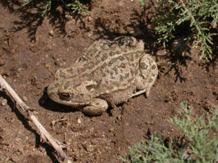 ステップ草原で出会ったヒキガエル。けっこう歩くのが速くて写真を撮るのに一苦労した。数頭がみられたが、前日までの雨の影響か? N君がつかまえきてくれた個体を撮影。もちろん、撮影後は生息地に戻した。 |