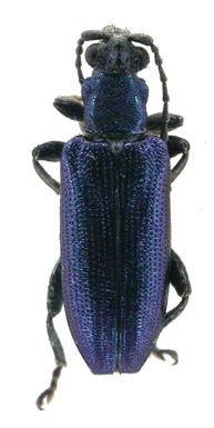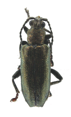 | 基準産地.中国上海. 模式標本.シンタイプがロンドンのThe Natural History Museumに保管されている(Askenold, 1990). 標徴.複眼が大きい.肢は太く短い.前胸背板は粗く点刻される.上翅間室の横シワは粗く密に覆う.陰茎先端部のくびれはなく,先端の突起は小さい.骨片の中央突起は太く,背面側に曲がる. 記載.体長:♂5.5-8.0 mm,♀8.2 mm. 背面の色彩:大多数の個体は銅色.♂に青色の個体がいる. 頭部:複眼は大きく,突出する.複眼周囲の溝は深い.頭頂は毛があり,強く隆起し,中央部の縦溝は深い. 触角:第6節は第5節より短く,第4節とほぼ同長.第3節は第4節より短く,第2節よりわずかに長い.第5節は第2節のほぼ2倍の長さ. 前胸背板:全体に四角形.中央縦溝は細く,不明瞭な個体もいる.前側面の隆起があり,周囲の溝は浅い.背面は密に点刻される.亜基部襟帯は浅い. 上翅:間室は光沢がある.会合部間室はシワがあり,翅端に向かって徐々に狭まる.他の間室は密に横シワが覆う.翅端は切断状で,外殻はやや突出し,内角は直角に近い. 肢:後腿節の先端部下面は細かな複数の鋸歯がある.脛節先端部の外角は,前脛節では鋭く突出し,中・後脛節は角張る. 尾節板:♂の先端は切断状で,♀では丸まる. 腹板:末端節の♂の先端は切断状,♀の先端はわずかに尖る.♂の先端部はわずかに窪む. ♂交尾器:陰茎先端部はくびれが無く,先端の突起は小さい.骨片の中央突起は太く,背面側に曲がる. 変異.後腿節の歯と尾節板先端の形状には変異がある. 比較.アオノネクイハムシはカツラネクイハムシに酷似している.しかし,陰茎先端部と骨片中央突起の形状により区別される.また,沿海州に分布するDonacia knipowitschi Jacobsonも本種に酷似しているが,骨片中央突起の形状により区別される. 分布.日本(本州),中国(黒竜江,北京,河北,山西,江西,広西,江蘇, 福建).中国北部の記録は,D. knipowitschiである可能性がある. 生態.本種の生態は不明な点が多い.成虫は4月末〜6月初頭の記録があり,主な出現時期は5月である.タチスゲやサヤヌカグサ属から採集されている. 系統関係.本種はカツラネクイハムシとD. knipowitschiの姉妹種であることが形態から推定される. 検討標本.本州および中国広西省桂林の標本を検討した. |