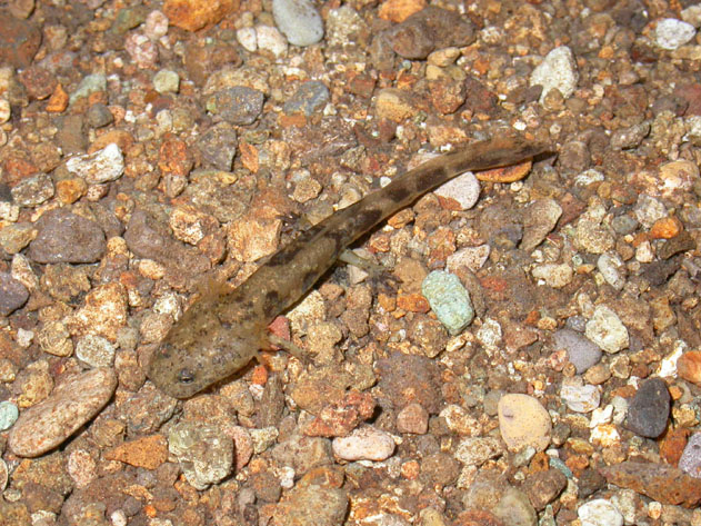 オキサンショウウオの幼生 まだエラがある。模様は黒のぶちだった。足ゴズという呼び名はとてもユニーク。 |