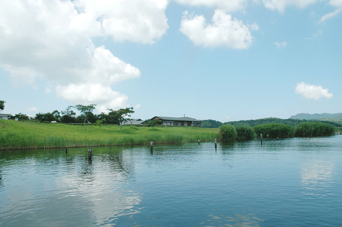 公園内の一番湖に近い位置には野鳥観察舎があり、宍道湖を一望し、水辺の鳥を観察できるほか、それらを紹介するパネルなどの展示があります。園内やビオトープ池にも野鳥や昆虫、植物の四季折々の姿が見られ、園内や周りの自然、生きものをテーマにした自然観察会を毎月開催しています。また、財団の独自施設の中では普及啓発の拠点であり、企画展や各種イベントも開催しています。