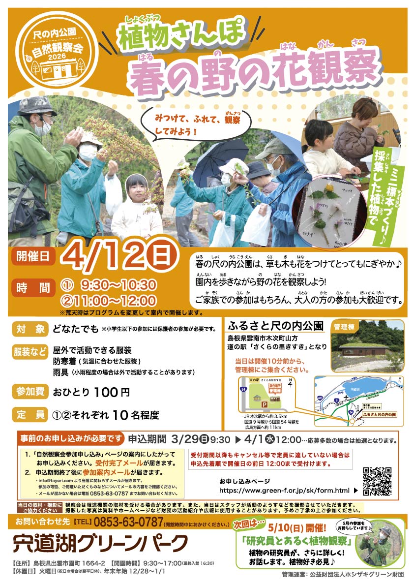 ふるさと尺の内公園 4月12日(日)自然観察会