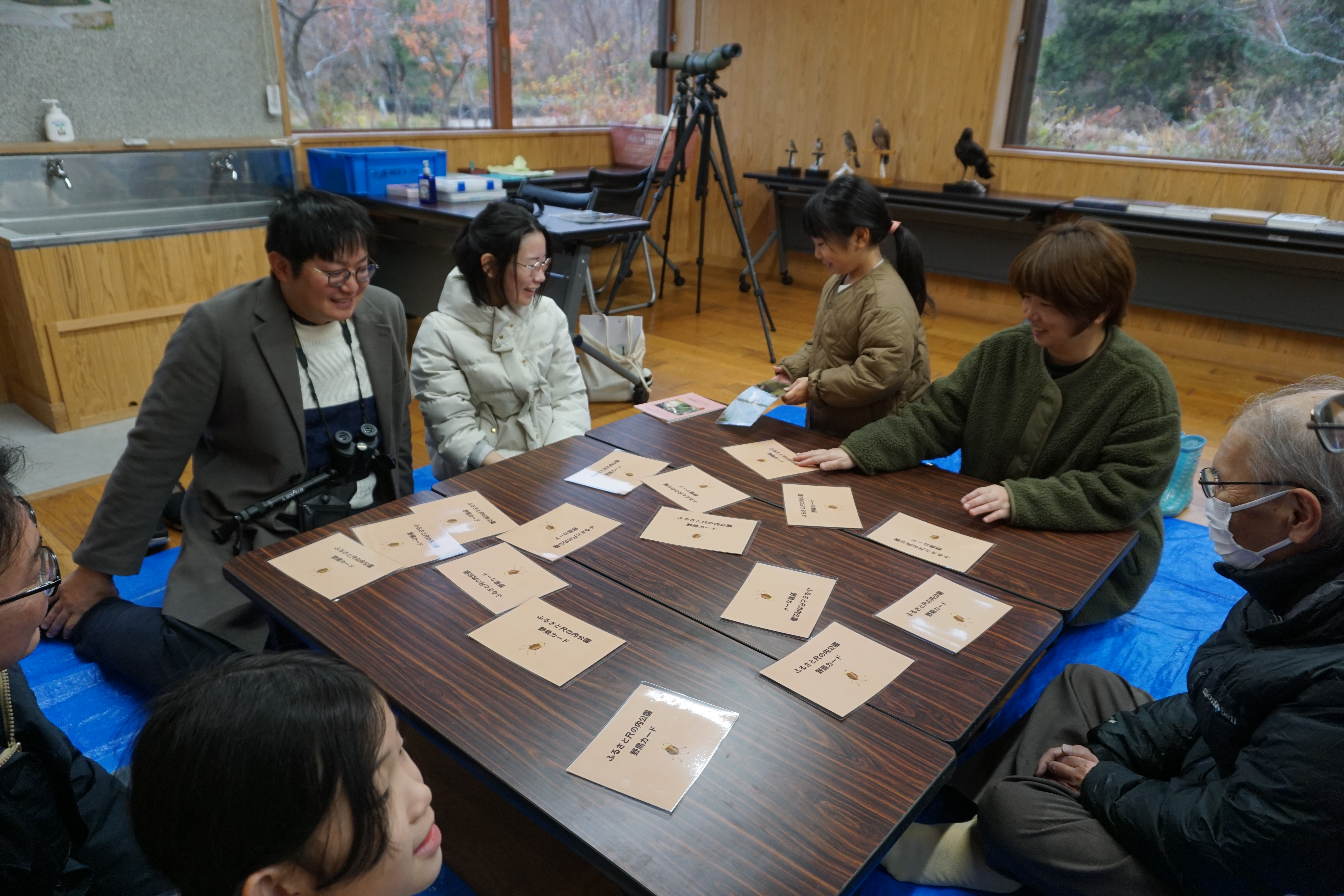 天候が不安定だったため、1回目はおもに屋内で鳥の色や形をテーマとしたカードゲームや色をぬって完成させる鳥のキーホルダー作りを楽しみました。2回目は天候が回復したため、野外でバードウォッチングを行うこともできました。参加者のみなさんからは「室内での活動となったが、非常に楽しめた!工作も熱中できたし、自分で作ってみると、鳥の特徴をより意識して見られるようになって良かった」、「双眼鏡の使い方がわかり、実際に見られて楽しかった。」などの感想をいただくことができました。