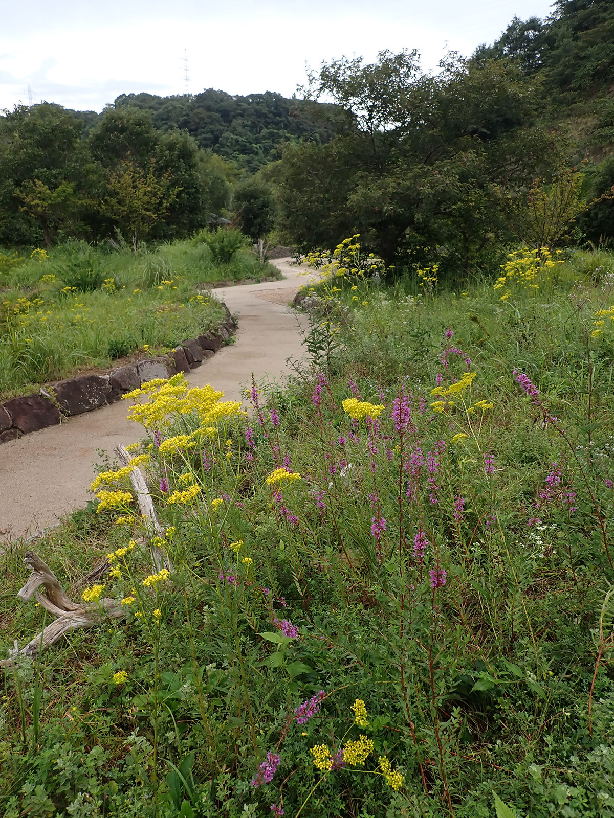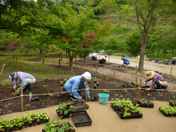 公園の魅力アップの方法として、近辺に自生する在来の多年草を中心とした植栽を進めることにしました。ふるさと尺の内公園はもともと野生動植物の生息場所として整備されたこともあり、ともすれば外来種などに優占されてしまいがちな環境を、この地域にあった在来植物中心の環境が優占するように保全していくことで、より良い野生動植物の生息環境の提供につながっていくものと考えています。