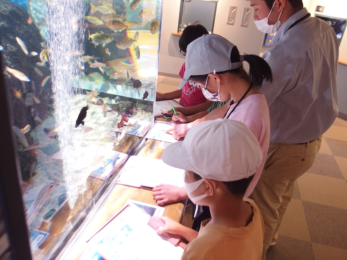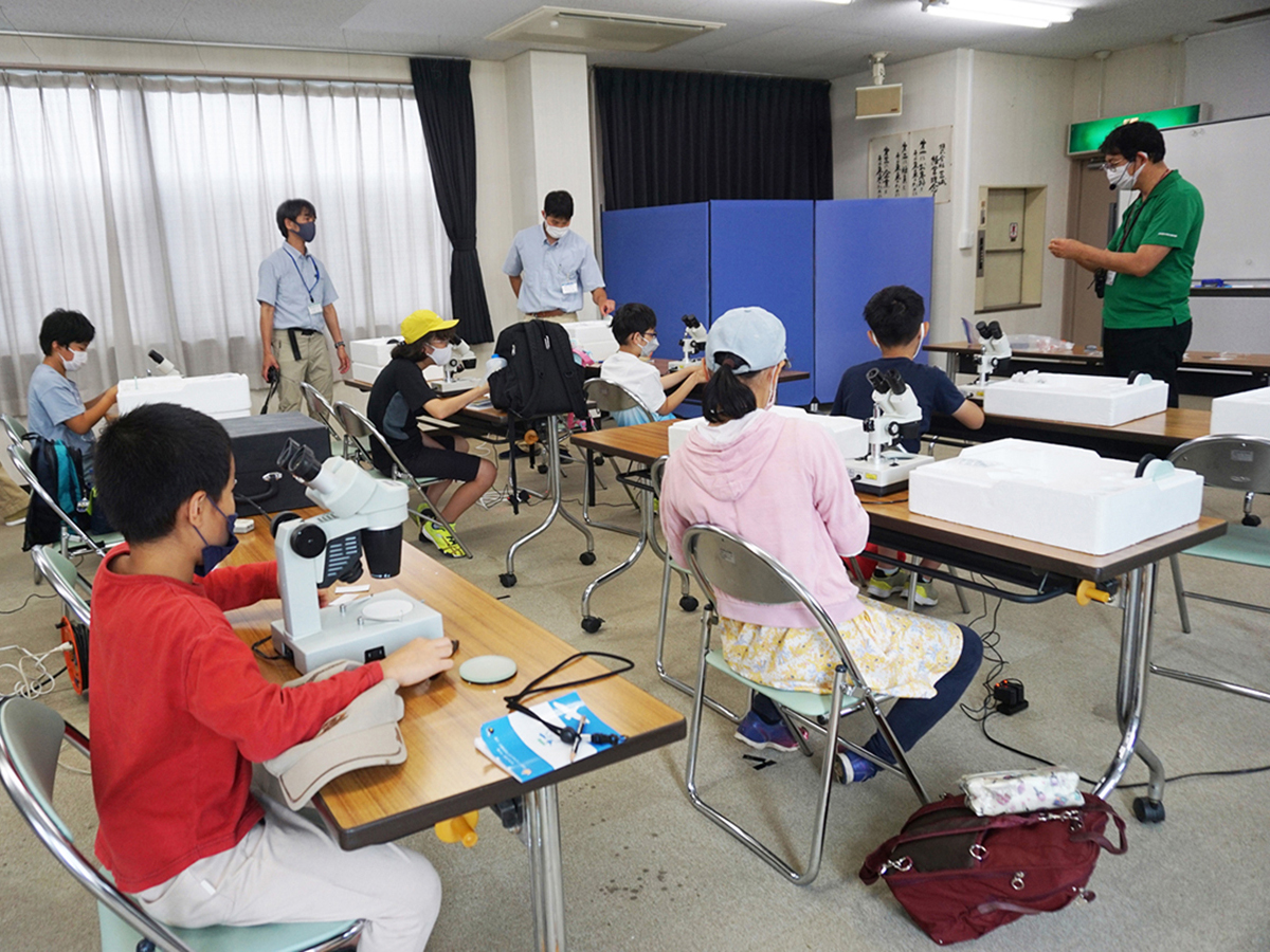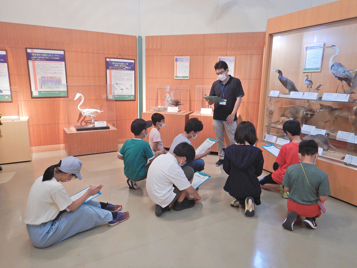 令和4年度ラムサール探偵団が始まりました。小学4年生から中学1年生までの計9名が団員として集まりました。第1回目は、結団式から始まりました。依頼状に書かれた今年度の団員へのお題は、「宍道湖、斐伊川、中海がわたしたちにもたらしてくれる自然のめぐみを見つけて教えてください。」です。斐伊川の源流付近、中海へとつながる境水道へも出かける予定です。各地で、団員それぞれの思う自然のめぐみを見つけてくれることを楽しみにしています。結団式のあとは、宍道湖を含む斐伊川水系やラムサール条約について話を聞きながら、ゴビウスを見学しました。午後は、実際に宍道湖に入り、宍道湖にすむ生きものを採集しました。どんな生きものが採れたのかを調べ、特徴をスケッチし、その特徴や生きものについて思ったことを発表しました。