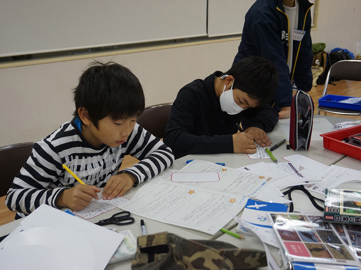 今年度の探偵団の締めくくりとして活動報告会を行いました。午前中はこれまでの活動を振り返ったり、ラムサール条約について学んだことをおさらいしたりした上で、発表のための準備や練習をしました。午後の活動報告会では、団員一人ひとりに活動を通して印象に残ったこと、発見したことなどを説明してもらったほか、今年度のお題「あなたがみつけた宍道湖のとっておきの秘密を教えてください」に対する答えも発表してもらいました。どの団員の発表も素晴らしく、クイズを織り交ぜたり、自作の模式図を使ったりと分かりやすく説明する工夫が見られたほか、宍道湖を守っていくためのアイデアを発表してくれる団員もいました。また、宍道湖の秘密についての回答も、生きもののこと、環境のこと、宍道湖が私たちにもたらしてくれるめぐみに関することなど、団員によってさまざまでしたが、いずれも宍道湖の自然の豊かさや大切さを感じさせてくれるものでした。団員のみなさん、素晴らしい発表を本当に有り難うございました!