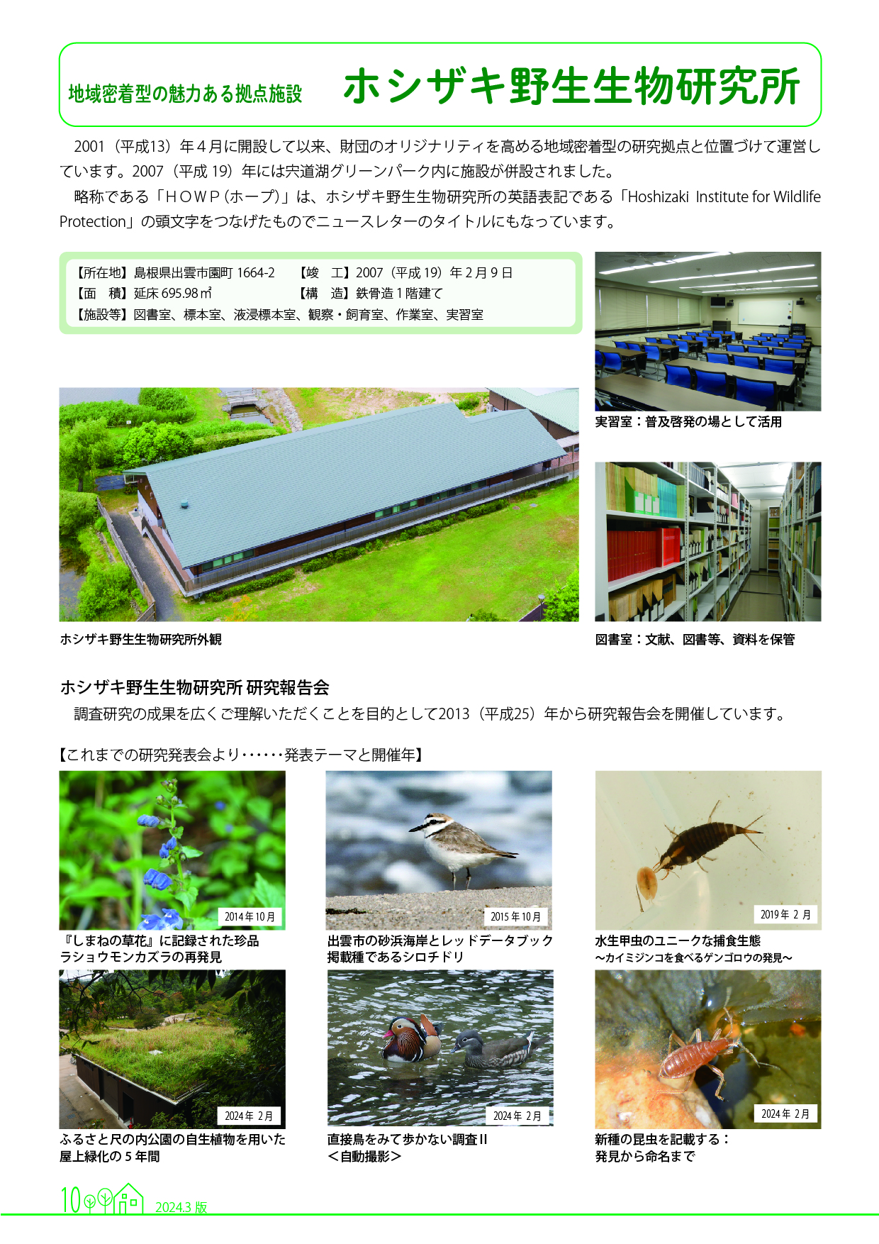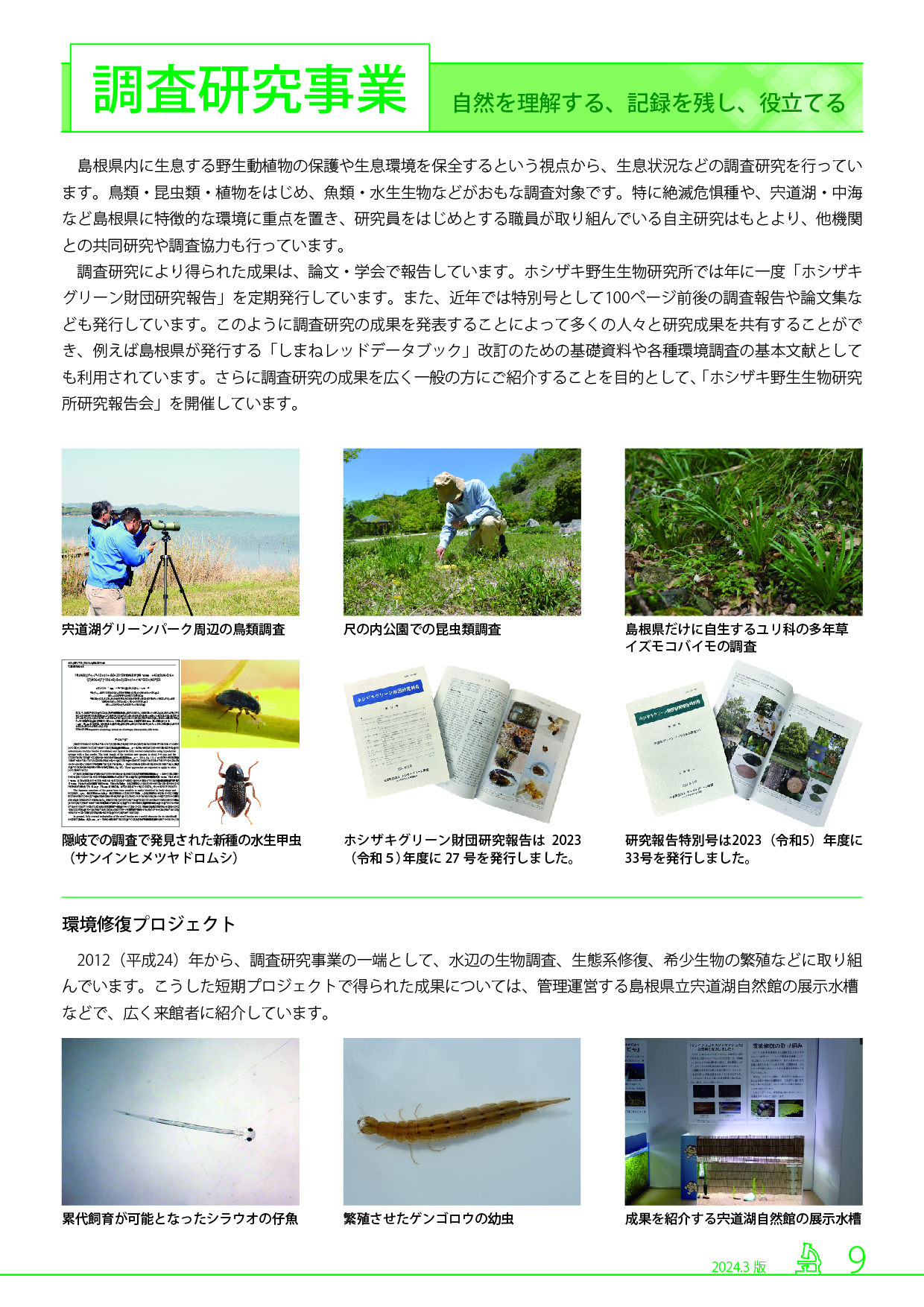 調査研究事業/施設の運営「ホシザキ野生生物研究所」